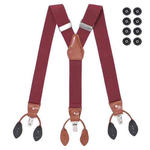 WELROG Hängslen för män med metallspänne justerbara hängslen arbetsbyxor män breda hängslen med 8 knappar lämpliga för bröllop och affärsmöten, Vinröd, En Storlek
