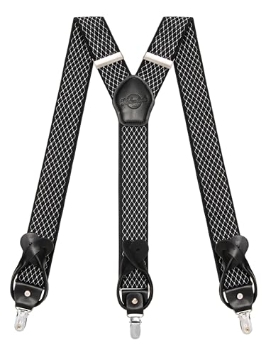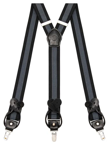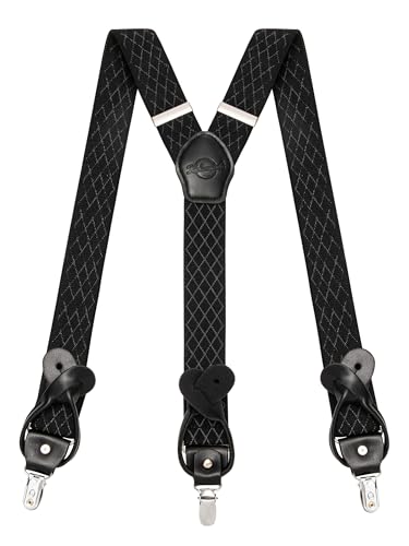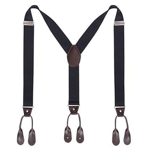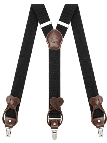 Kohentact Hängslen för män med klämma och knappfäste, inklusive 6 knappar, 3,5 cm breda, Y-form, för en kroppslängd upp till 200 cm, hängslen för män 1, Svart + brun, En Storlek