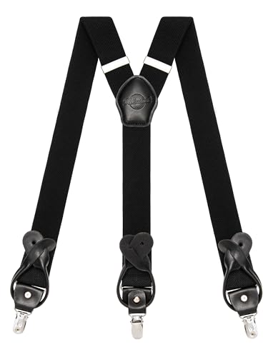 Kohentact Hängslen för män med klämma och knappfäste, inklusive 6 knappar, 3,5 cm breda, Y-form, för en kroppslängd upp till 200 cm, hängslen för män 1, svart, En Storlek