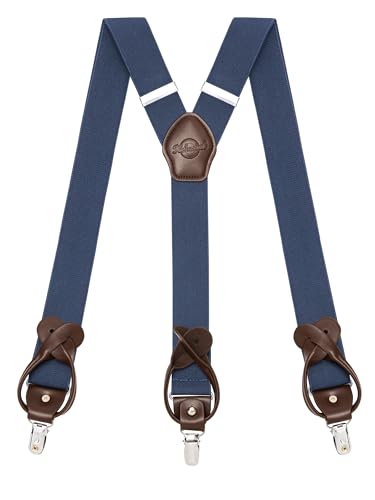 Kohentact Hängslen för män med klämma och 6 knappar, 3,5 cm breda, Y-formade, rostfritt stål, Denim blå, Standard