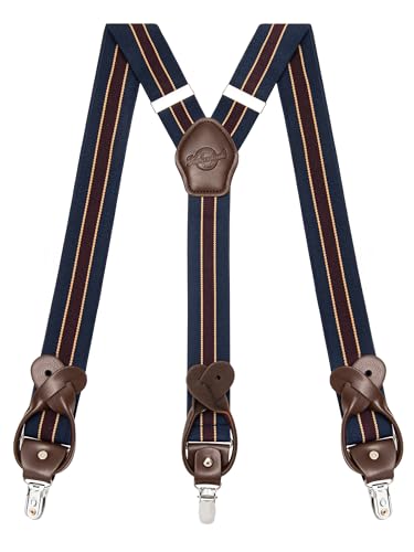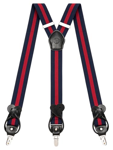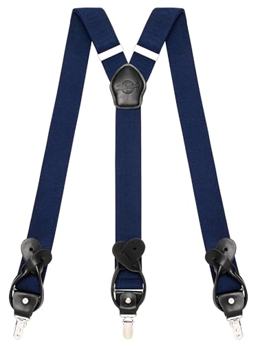 Kohentact Hängslen för män med klämma och knappfäste, inklusive 6 knappar, 3,5 cm breda, Y-form, för en kroppslängd upp till 200 cm, hängslen för män 1, Marinblå, En Storlek