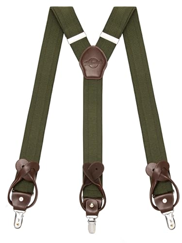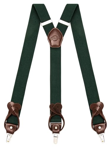 Kohentact Hängslen för män med klämma och knappfäste, inklusive 6 knappar, 3,5 cm breda, Y-form, för en kroppslängd upp till 200 cm, hängslen för män 1, Mörkgrön, En Storlek