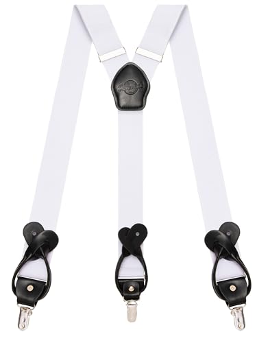 Kohentact Hängslen för män med klämma och knappfäste, inklusive 6 knappar, 3,5 cm breda, Y-form, för en kroppslängd upp till 200 cm, hängslen för män 1, Vit, En Storlek