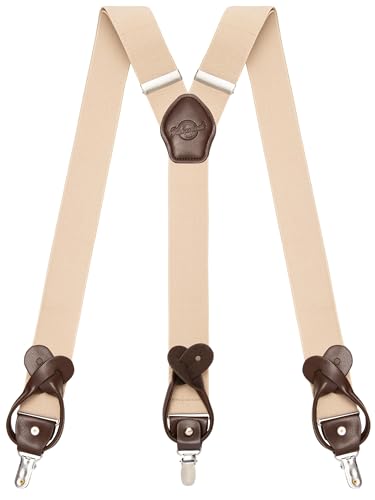Kohentact Hängslen för män med klämma och knappfäste, inklusive 6 knappar, 3,5 cm breda, Y-form, för en kroppslängd upp till 200 cm, hängslen för män 1, Beige