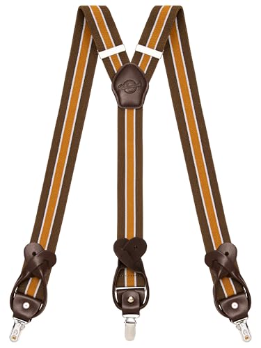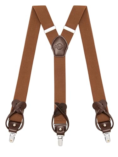Kohentact Hängslen för män med klämma och knappfäste, inklusive 6 knappar, 3,5 cm breda, Y-form, för en kroppslängd upp till 200 cm, hängslen för män 1, BRUN, En Storlek