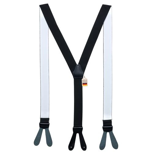 Kajeer Män, knappar, hängslen breda elastiska – 35 mm Y-form, längdjusterbara hängslen, svart, Knopfende