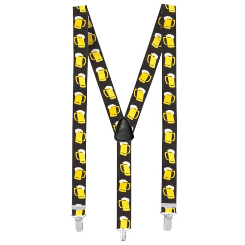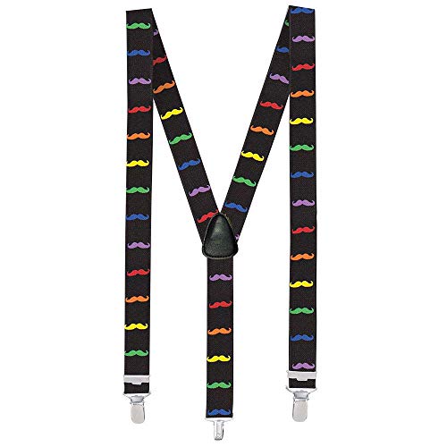 Boland 00653 - Hängslen mustascher, 1 styck, en storlek, svart med flerfärgade skägg, elastan, gummi, metallspänne, läderlapp, hängslen, utklädnad, kostym, temafest, karneval
