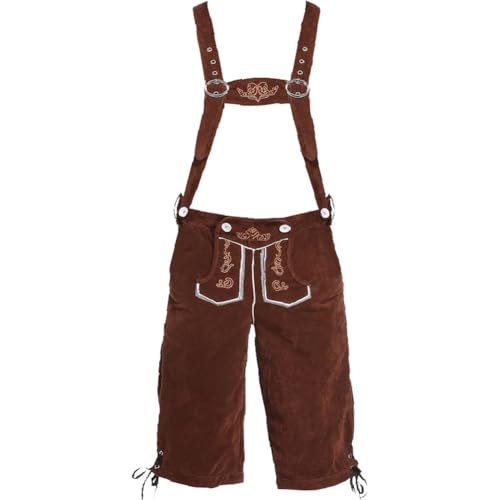 Feynman Lederhosen Autentiska bayerska för män - traditionella tyska oktoberfestshorts med broderi och justerbara hängslen - ölfestival karneval kostym, Brun, M