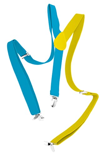 Folat 24864 hängslen färgblock blå/gul neon för karnevalskläder tillbehör kvinnor och män fest karneval kostym