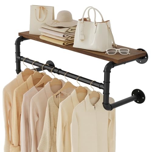 Yawinhe Industriell rörklädhängare med övre hylla, 70 cm väggmonterad klädställ, platsbesparande hängare med 4 baser, multifunktionell hängstång för butiker, hem och garderober