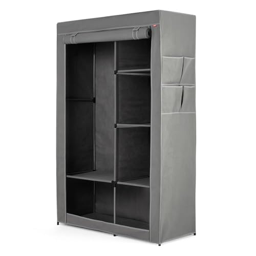 Rayen | Garderob med hyllor | Enkel montering | Andningsbar | 6 hyllor, 4 sidofickor och 1 hängstång | Mått: 105 x 45 161 cm