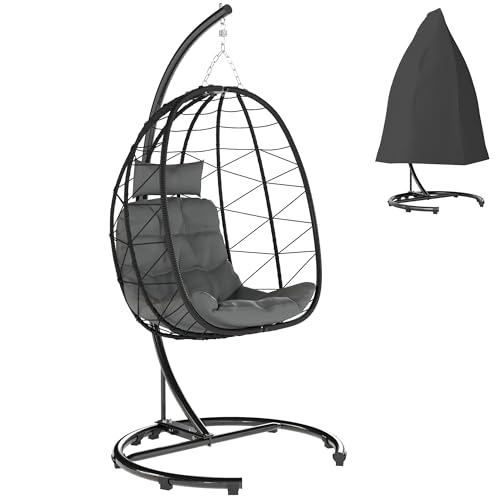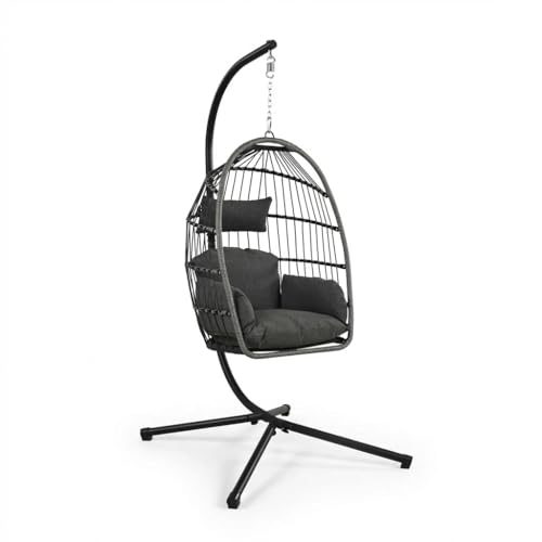 Swoods XXL Egg Hanging Chair - Hängstol med stativ - Inomhus och utomhus - Inklusive dynor - Äggstol - Väderbeständig - Äggstol - upp till 150 kg (Mörkgrå)