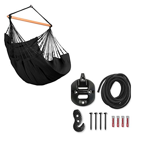 LA SIESTA® - Habana hängstol komfort storlek + monteringssats för avkoppling & stil: 360° vridfog, högkvalitativt bambuträ – GOTS-certifierad bomull (Onyx)