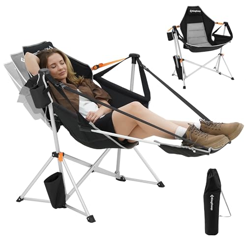KingCamp Campingstol hopfällbar hängstol med fotstöd justerbar hög rygg lätt bärbar aluminium gungstol uppfällbar stol svart och grå