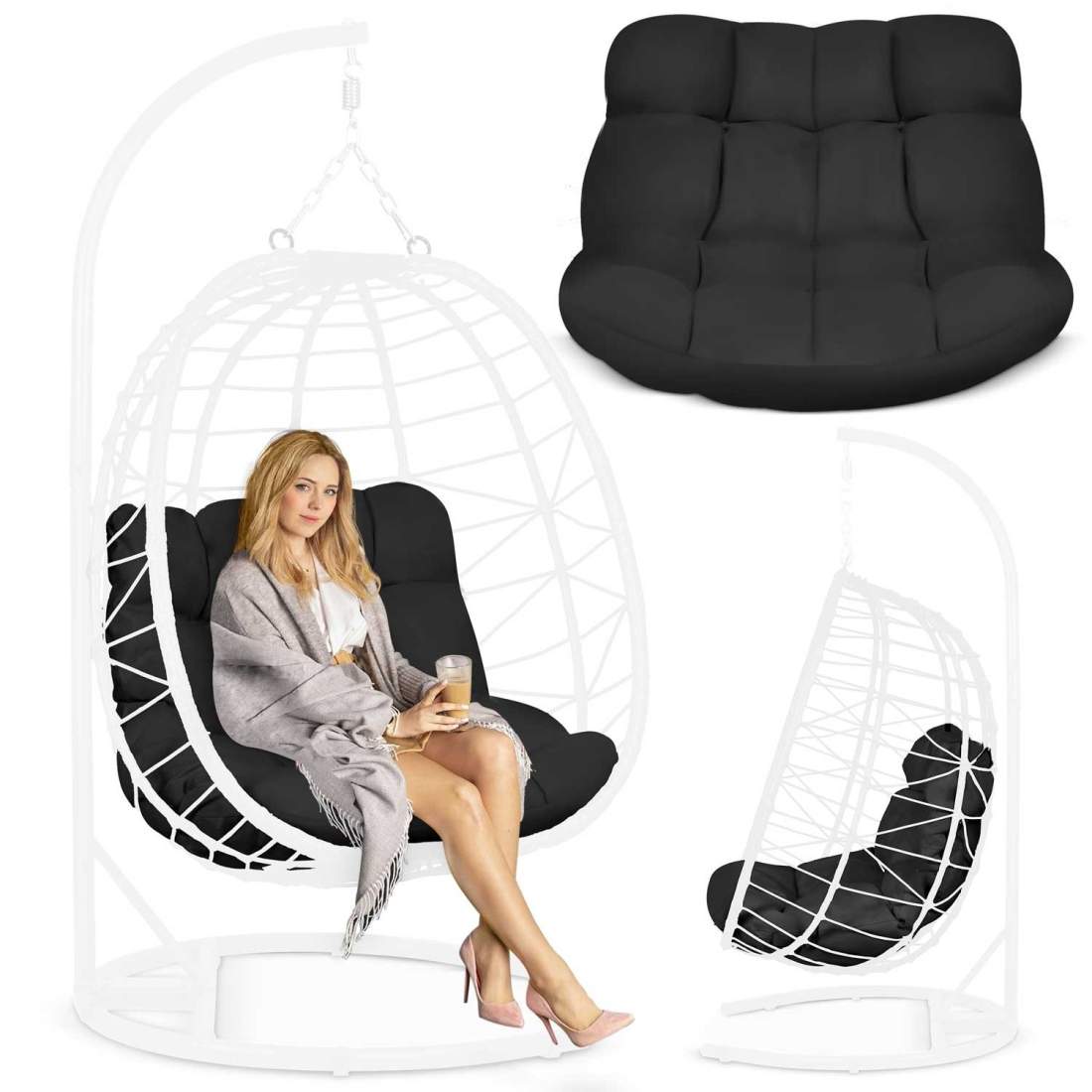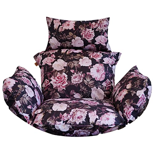 Bielik dyna för hängstol, trädgårdsdyna, för upphängd gungstol, sittdyna för hängande korg, svart + rosor