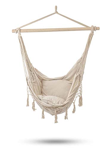 Chihee Hängstol handgjord hängande stol bomullsrep vävd hängande sits mjuk spunnen stor stretch hängmatta gunga, hopfällbar stark metall spridare bar elegant makramé komfort inomhus utomhus trädgård