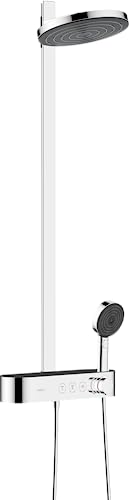 hansgrohe Pulsify S - Duschsystem med termostat, Regndusch (260 mm), Duschset med handdusch (3 stråltyper), duschslang, duschstång och rund huvuddusch (1 stråltyp), krom, 24220000