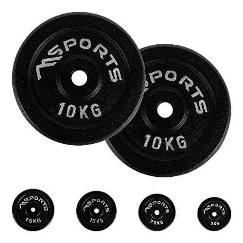MSPORTS Ett par vikt-plattor, professionell tillverkade av 100 % gjutjärn 5–30 kg hantel 2 x 10 kg – svart