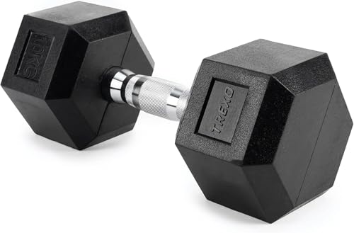 TREXO Hantel 10 kg hexagon hållbar gummerat gjutjärn för styrketräning hemma med ergonomiskt handtag stabil och mångsidig hantel hex HXD100