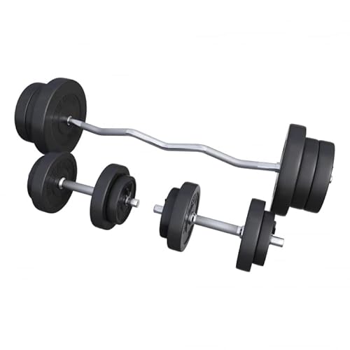 GORILLA SPORTS® Hantelset – 70 kg, SZ curlstång 120 cm, vikter 4 x 1,25 kg/4 x 2,5 kg/4 x 5 kg/2 x 10 kg, 2 x hantlar 30 mm, med 6 stjärnstänger/fjäderlås, plast – hantel set, hantlar
