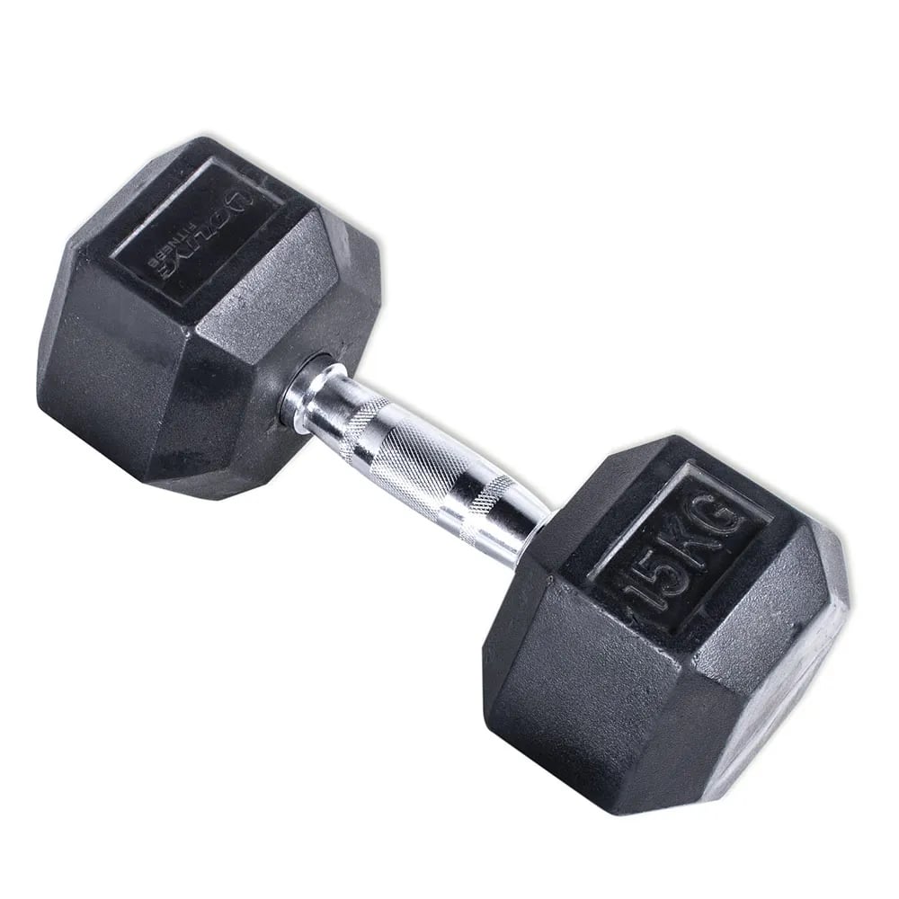 Hexagon Hantel 15kg Svart Gummi Räfflat Handtag