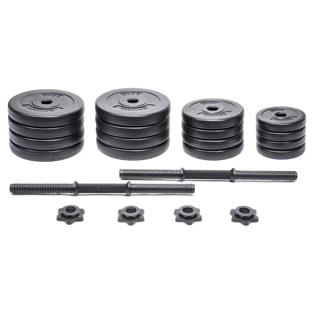 C.P.Sports 2in1 hantel- och skivstångsset 30kg | 4x 1,25kg - 4x 1,5kg - 4x 2,0kg - 4x 2,5kg vikter - 2x handtag | plastskivor för styrketräning, fitness, hemmagym | silver-svart