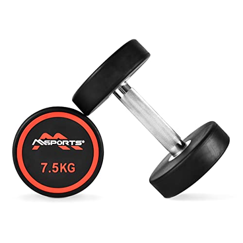 Rundhantlar Premium set med 2 | Gummi hantel beläggning 2,5–50 kg | förkromad och räfflad | Olika viktvarianter hantel (2 x 7,5 kg)