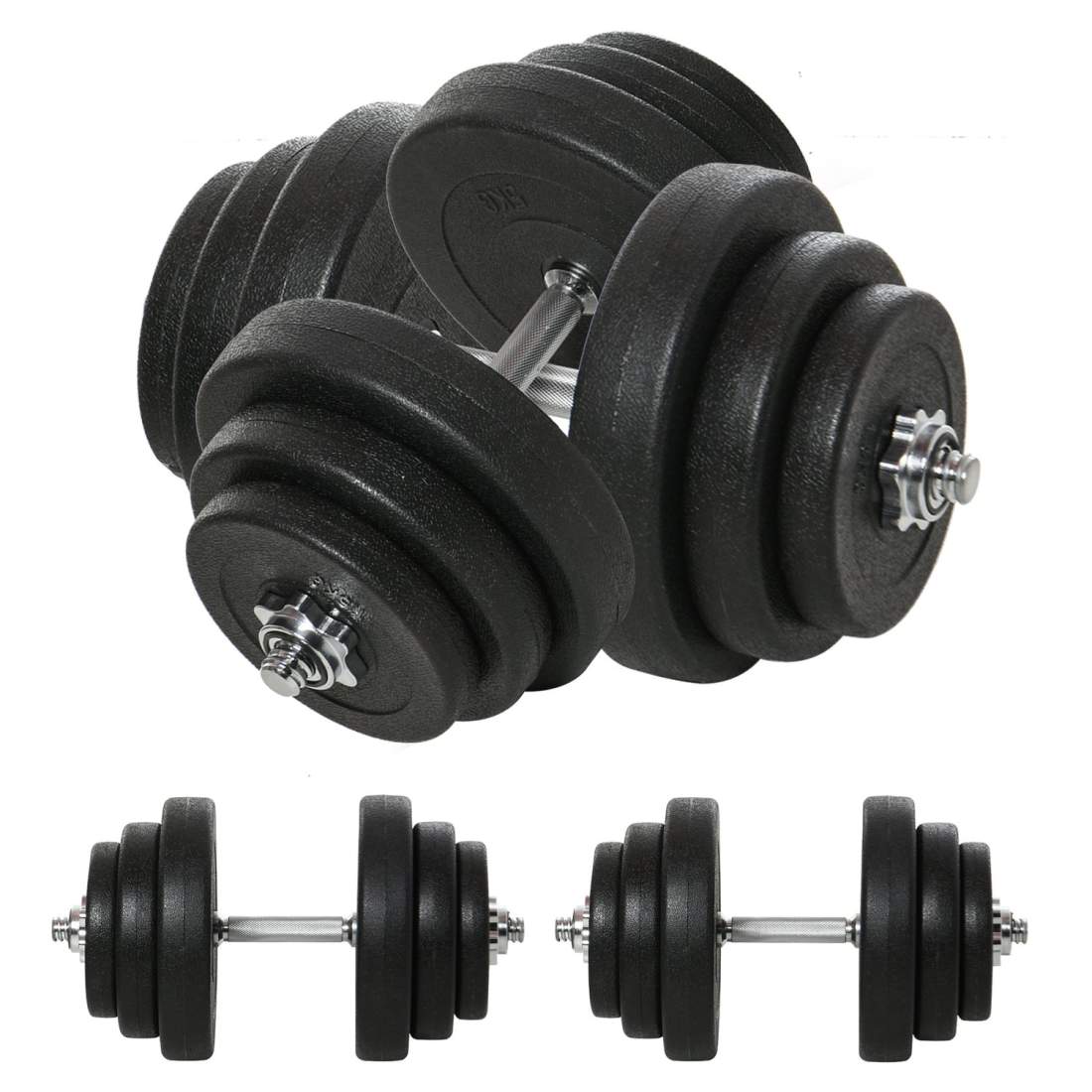 CCLIFE 2i1 Hantelset med 2 par korta skivstänger och justerbara långa skivstänger 20 30 40 kg, professionell hantelset med anslutningsstålror och vikter - ZERRO.