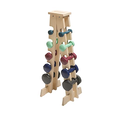 Meanswood Hantelställ Hemmagym – Vikthållare för justerbara hantlar, Kompakt Hantelrack i Trä, Maxkapacitet 90 kg (10 Vikter)