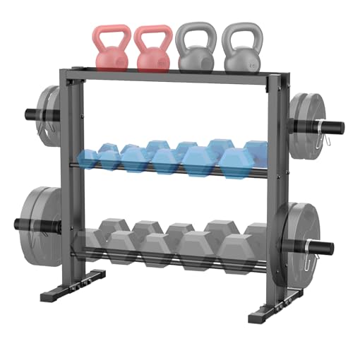 WINNOW Hantelställ, 3 nivåer vikter förvaringsställ för hantlar, viktplattor och kettlebells