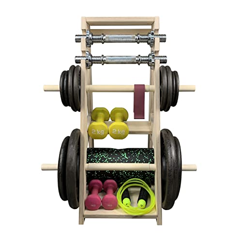 Meanswood Vikthållare för skivstång och hantlar – Träställ Hemmagym, Kompakt Viktskivhållare och Hantelställ, Maxkapacitet 160 kg