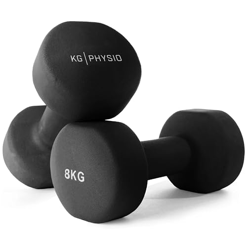 KG Physio hantelset med A3-övningsaffisch - neoprenhantlar set med 2 - fitnessvikter av gjutjärn - vikter hantelset, svettabsorberande hantelset för kvinnor och män - hantlar 1 kg - 10 kg