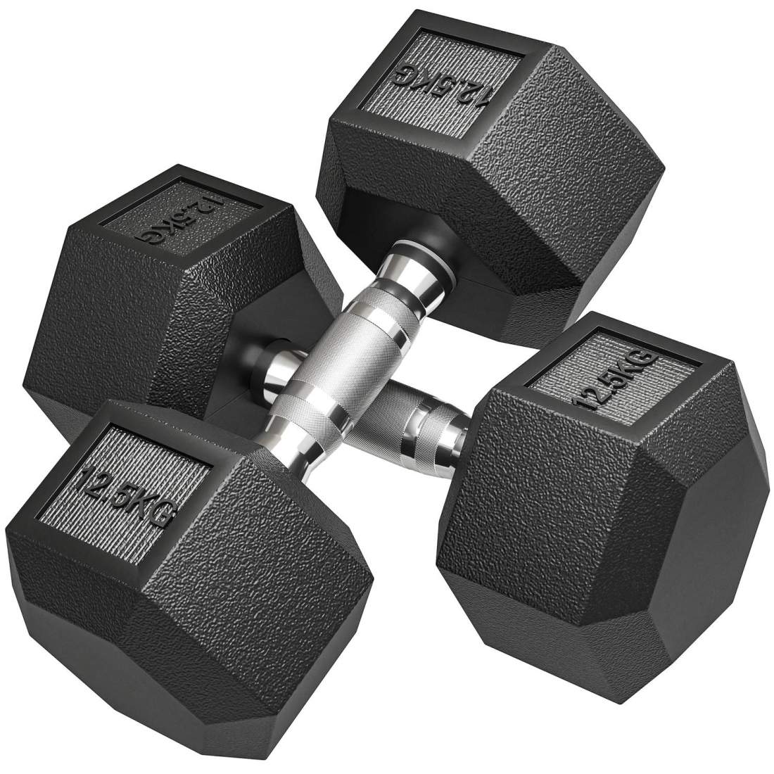 MSPORTS Hexagon-hantlar Premium (par) | 5–30 kg | halkfri belagd| ergonomiska förkromade handtag | hantelsats | hantelsats (12,5 kg – par (2 stycken))