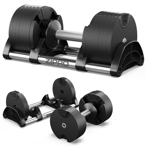 Zipro Justerbara hantlar, 24 kg halkfria runda vikter med 12 viktinställningar 2–24 kg, hemmaträning, rund form hemmatym