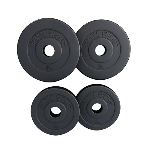GORILLA SPORTS® Olympic viktskivor - 1,25-30 kg vikter, singel/set, 50/51 mm hål, plast - viktskivor set, hantlar