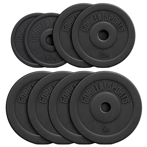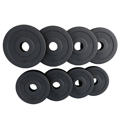 GORILLA SPORTS® Olympia Hantelskivor – 1,25 kg, 2,5 kg, 5 kg, 15 kg, 20 kg, 25 kg, 30 kg vikter, 50 mm borrning, gjutjärn, enkel/set – viktskivor, hantlar