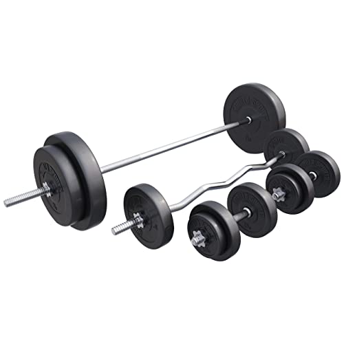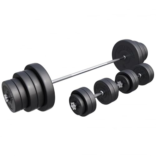 Ultrasport 30 kg kort och lång hantelset, bestående av 2 korta hantlar, länkstång för hanteln plus 10 viktskivor, 4 stjärnstängningar, hantelset