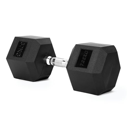 TREXO Hexagon-hantlar 30 kg hexagonhantlar med slitstarkt gummerat gjutjärn för styrketräning med ergonomiskt förkromat handtag vikter träning hemma hantel för män och kvinnor