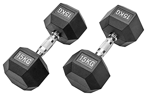 30 kg (2 x 15,0) gummerade hexagon studio hantlar svart