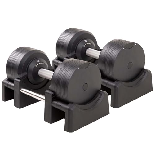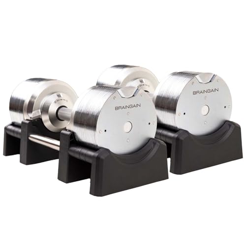 BRAINGAIN Justerbara Hantlar, Set 23,5 kg / 32,5 kg / 41,5 kg – Flera Vikter i ett – Byt vikt på 1 Sekund – Platsbesparande gymutrustning – krom/svart