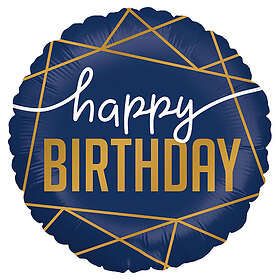 Stor Happy Birthday Ballong Mörkblå & Guld