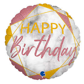 Marble Happy Birthday Holografisk Ballong Rosa