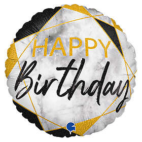 Marble Happy Birthday Holografisk Ballong Svart