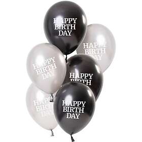 Ballonger Vit/Svart Happy Birthday 6-pack