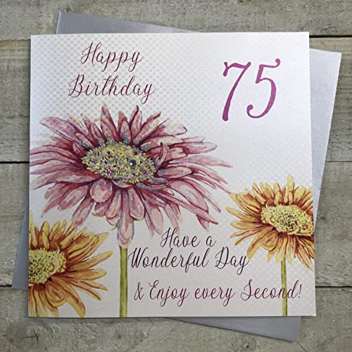vita bomullskort XLWBA75 1-del Happy 75th Birthday extra stort födelsedagskort, rosa blomma