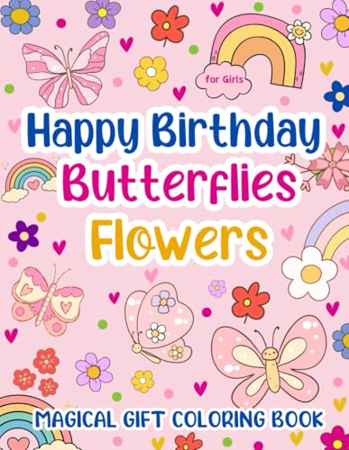 Happy Birthday Butterflies Flowers Gift Coloring Book for Girls: Rainbows Ladybugs for Kids Ages 4-8 | Easy Designs to Color