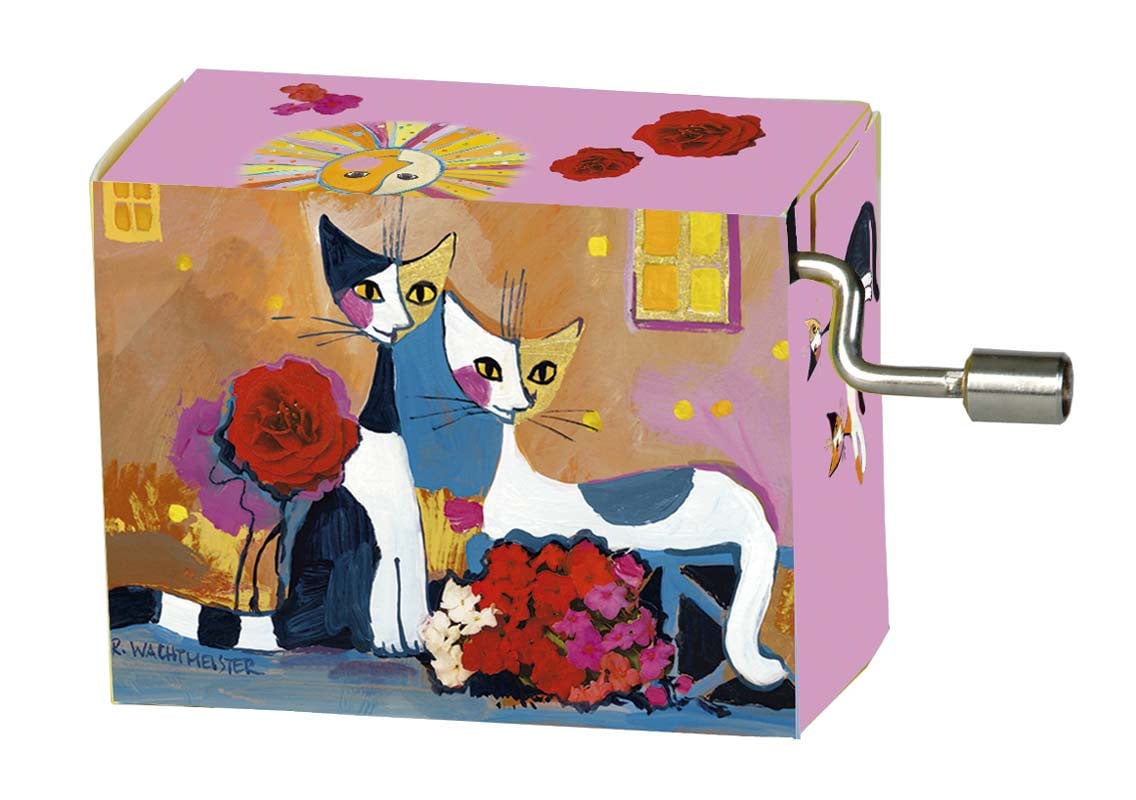 Gammaldags speldosa, Happy Birthday - Två katter med blommor