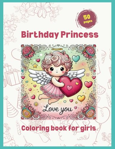 BIRTHDAY PRINCESS: Happy Birthday Coloring Book with Angels, Flowers, Cakes and Feel-good Images. For Girls Ages 6+