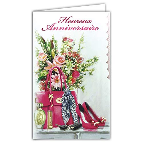Afie 69-4327 Happy Birthday Card med kuvert - mini affischer storlek 17 x 11,5 cm - livet är vackra rosa blommor halvblommor hem fasad retro vintage fönsterluckor