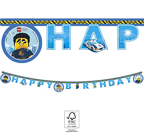 Procos 92251 – Happy Birthday-banderoll, Lego City, FSC® Mix, girlang, födelsedag, temafest, blå